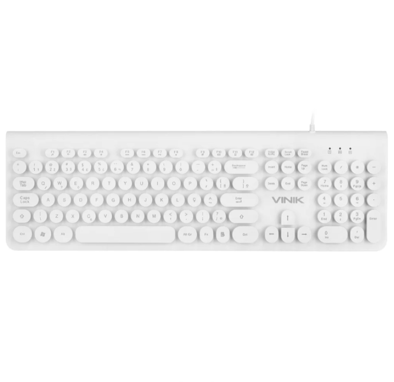 TECLADO USB MULTIMIDIA DYNAMIC CIRCLE ABNT2 TECLAS REDONDAS CABO USB 1.8M BRANCO - DC110B